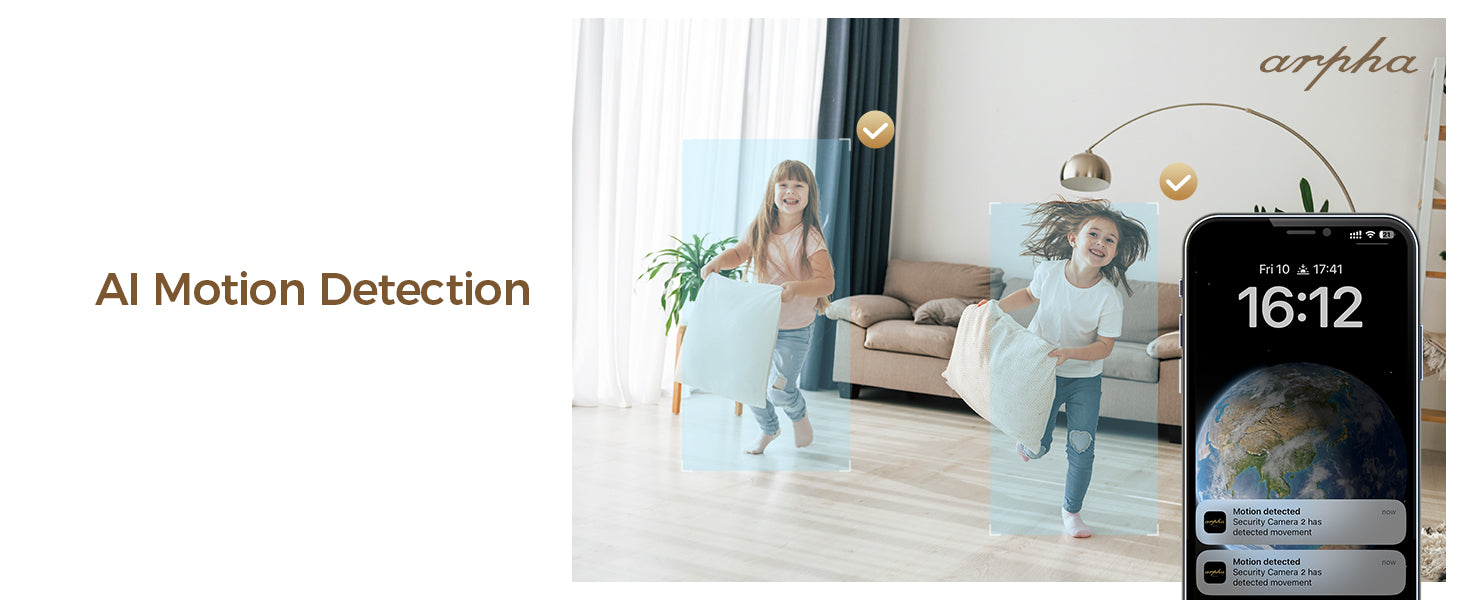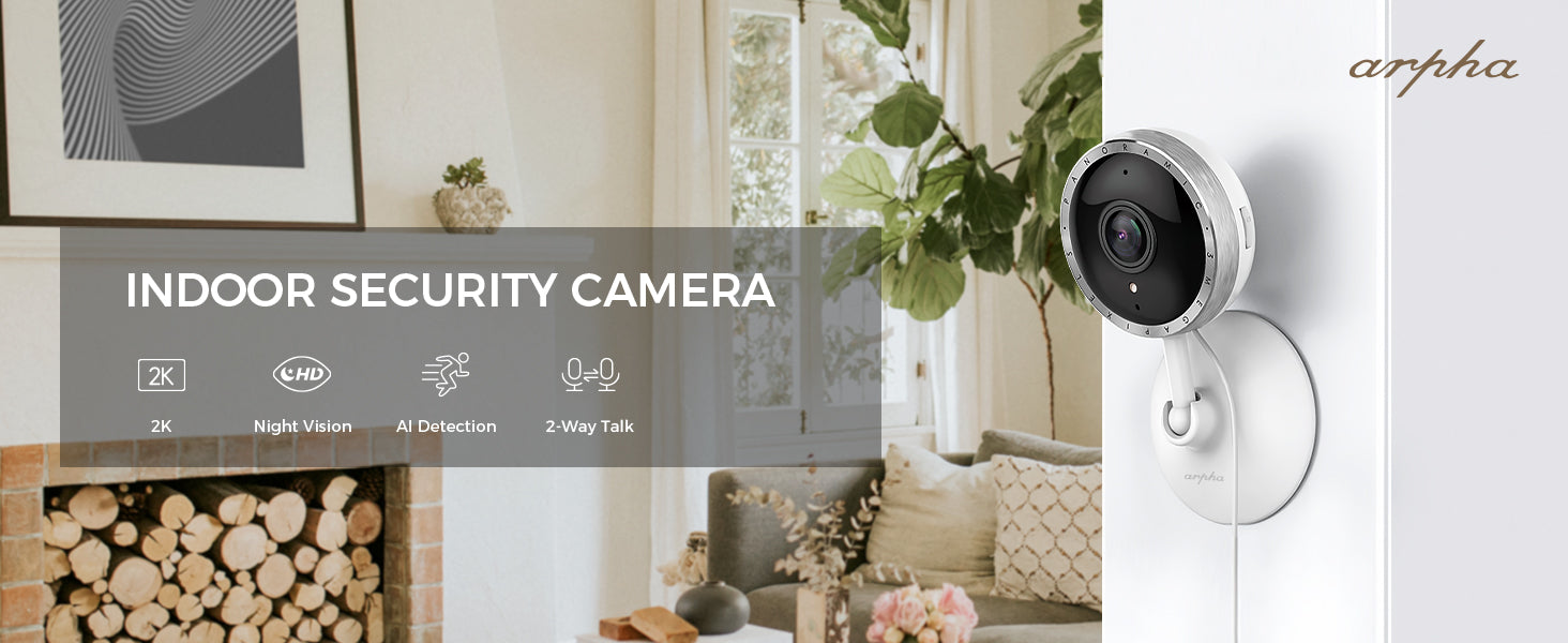 Arpha P160 Security Camera 2K WiFi PIR Human Detection Sound Detection, Two-Way Talk, Support TF Card & Cloud Storage