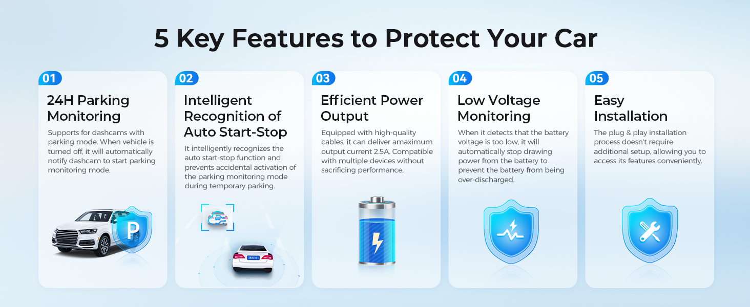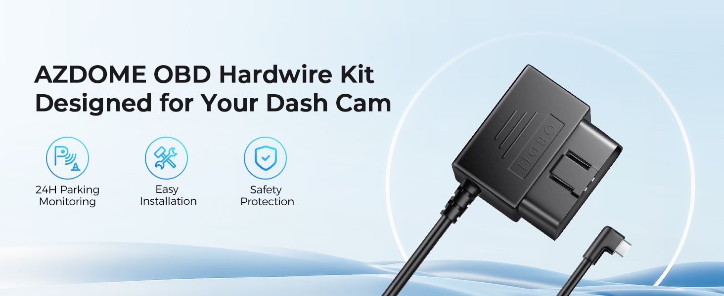 AZDOME OBD Hardwire Kit Type C Port, Support Parking Mode, 11FT 12V-24V to 5V for M300S M550 M660 GS63H Pro PG17 Dash Cam
