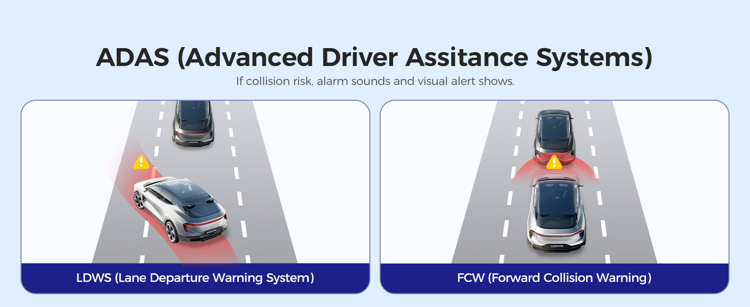 - ADAS Collision Avoidance: Advanced Driver Assistance Systems could improve driving safety by providing real-time assistance and warnings. Including 2 ADAS alerts: Forward collision and lane departure.