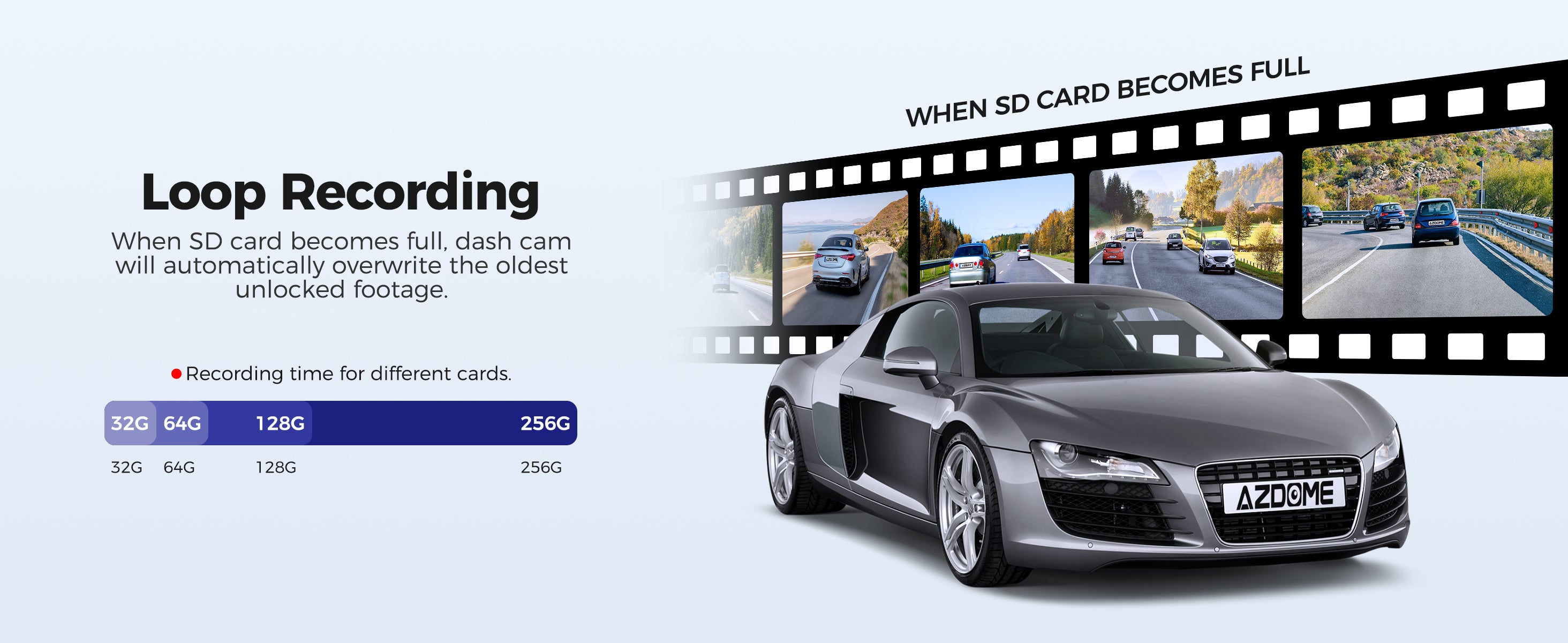 Equipped with a high/medium /low sensitivity G-sensor, when your vehicle is impacted, the dash cam will immediately lock a 1 minute video to preserve crucial evidence for you.