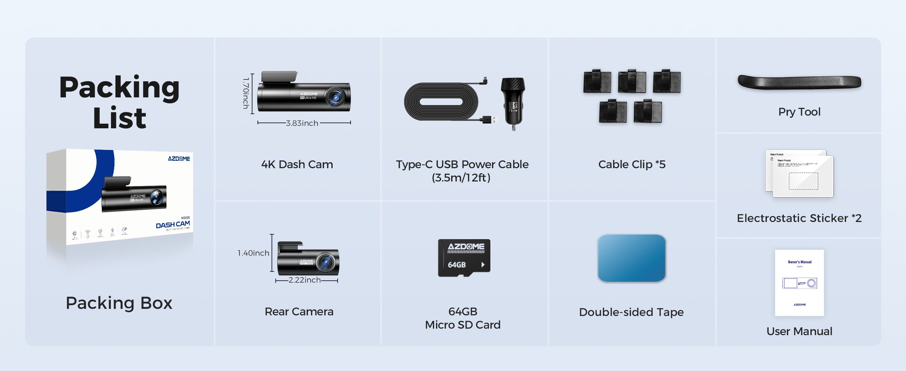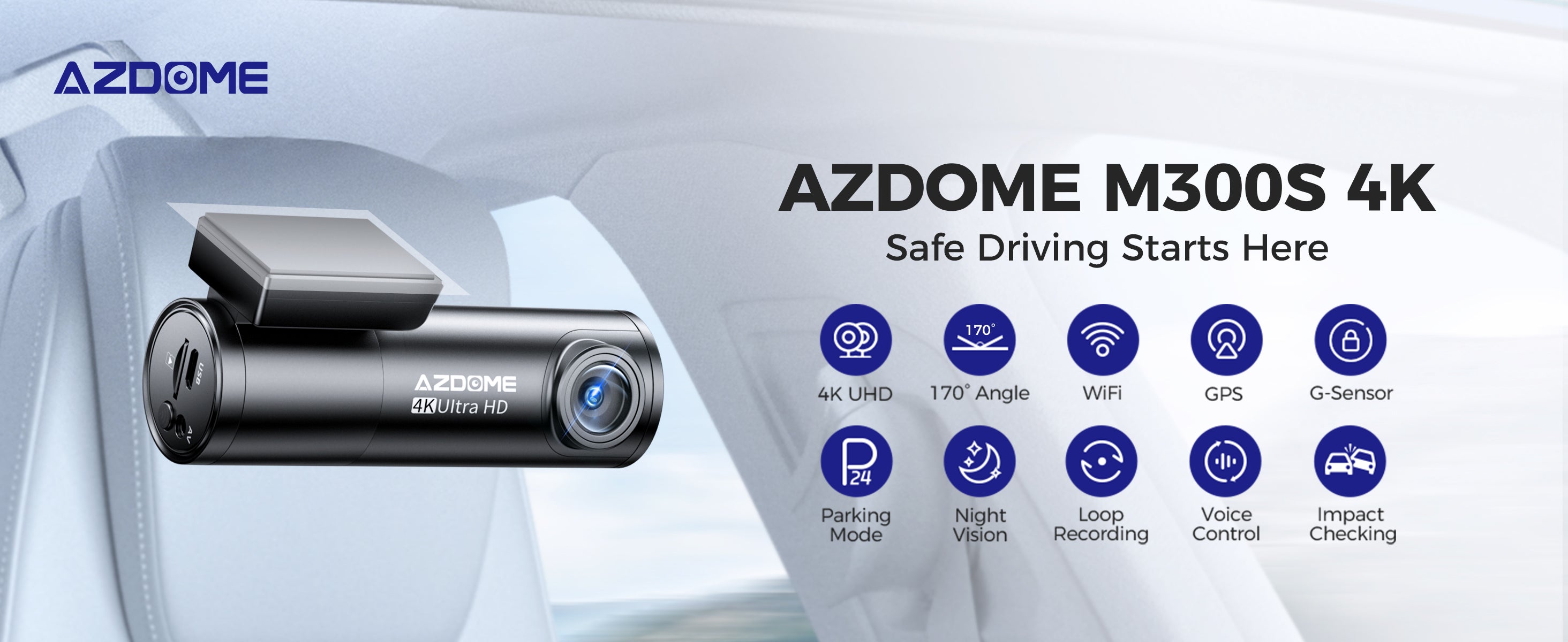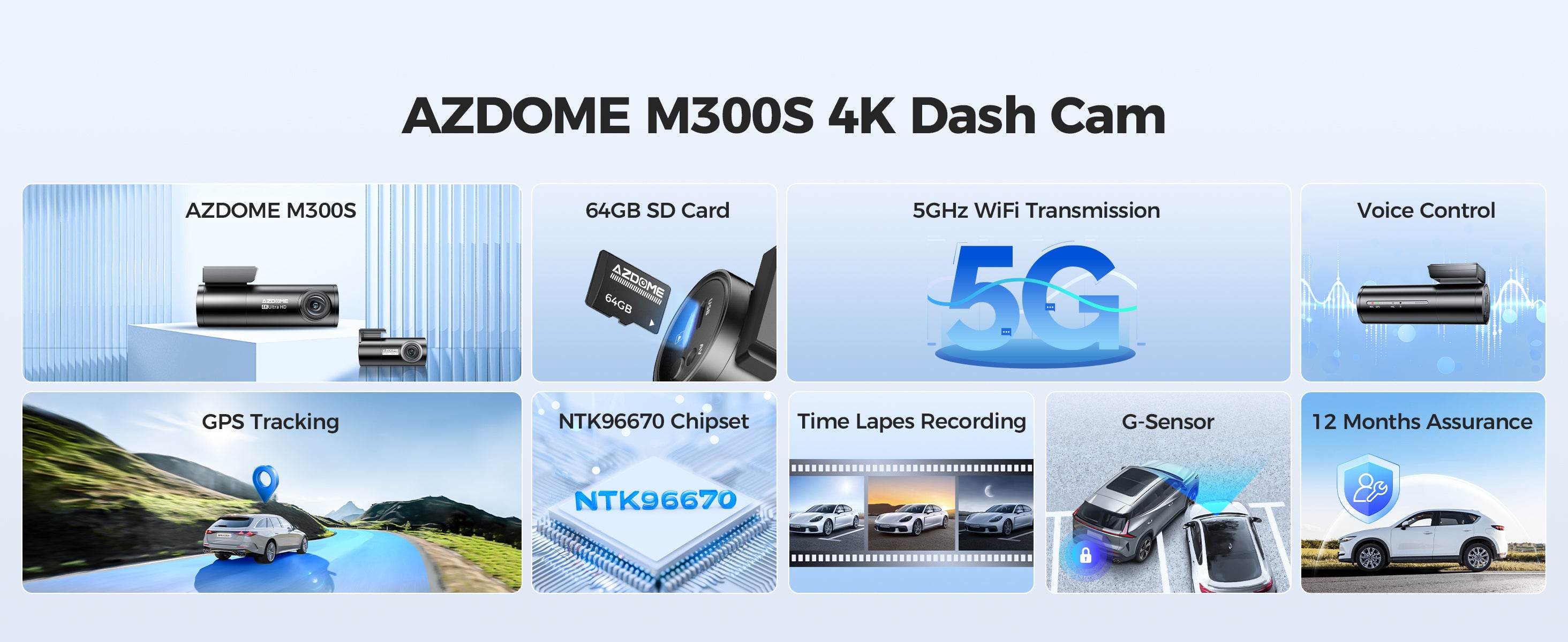 AZDOME M300S 2CH Dash Cam 4K with 5.8G WiFi GPS Voice Control WDR Night Vision 24H Parking Mode