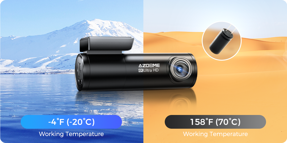 Keeps recording – captures icy crashes, hit - and - run, and stays stable – records summer road trips, parking lot heat(e.g., 158°F desert drives)